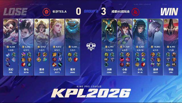 看来上一场的让二追三让AG士气大振,这场全员状态都拉满了。染详三把都出了霸者重装,或许会带起一波新潮流。AG卡位赛的对手是广州TTG,如果能保持这场的状态,也不是没有胜算。