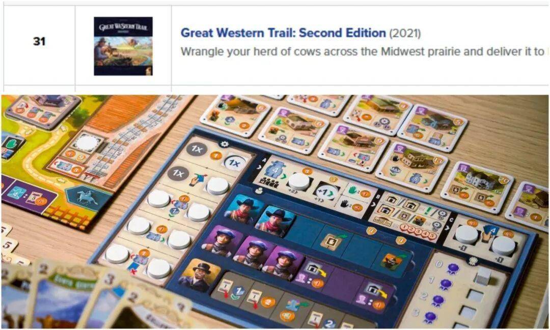 首先,《Great Western Trail》首发于2016年,至今也已经有10年了,而看上去很新的第二版发行也已经是5年前的事情了,理论上发一个特别版不成问题。同时无论是第一版还是第二版,《Great Western Trail》的扩展或者是变体游戏也都不算少,从体量上也可以满足需求,配件方面同样也有很多可提升的空间,完全契合AR社一贯的设计思路。最后,第一版和第二版在BGG极客榜的排名分别是19和31,这都不算经典,还有谁算呢?