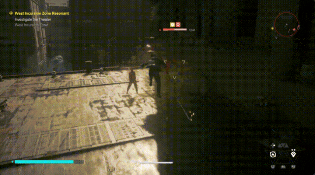 Remedy在会上展示了一段更加“原始”的战斗片段:能看到迪伦同时面对多名不同种类的共振体,先后利用不同的武器和能力打出伤害,利用对空中敌人的处决,来躲避一些攻击,并借此从地面转移到车顶上,再转向另一名敌人展开进攻。