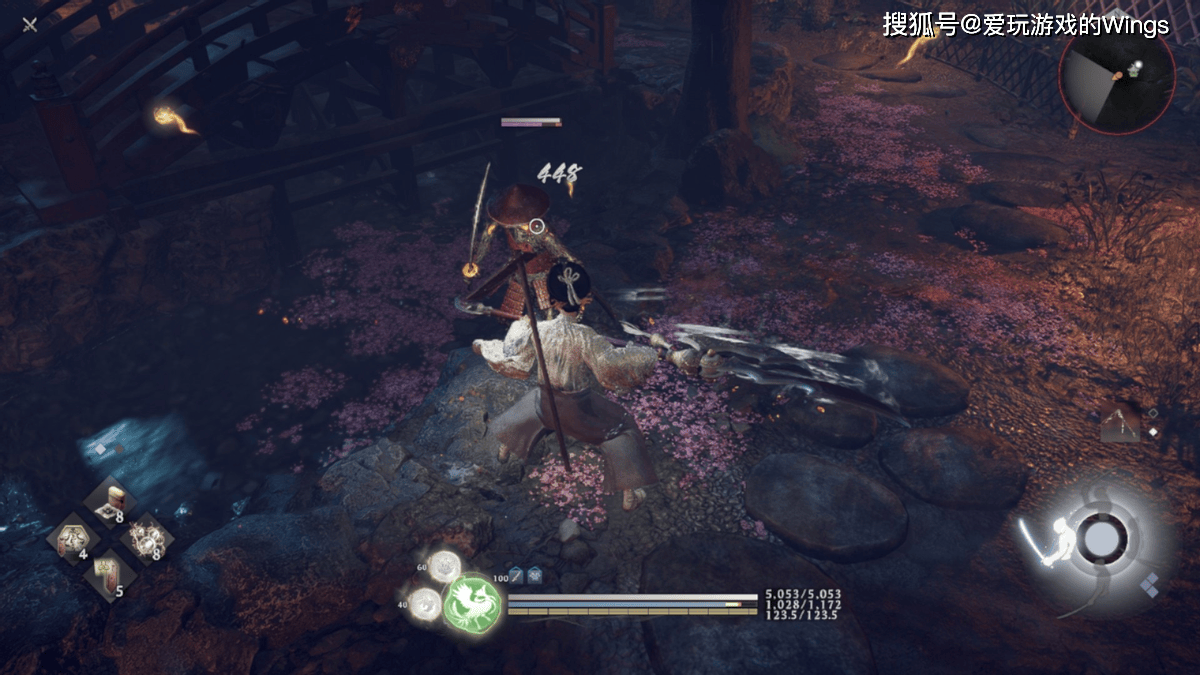 相比之下,忍者模式则完全走向了另一条道路。舍弃复杂的架势系统,换来的是近乎疯狂的机动性和进攻节奏。施展攻击后可用“霞”闪避取消硬直,配合忍具和忍术的辅助,战斗体验确实让人联想到《忍者龙剑传》中的隼龙。两种风格可以在战斗中随时切换,资源相互继承,这种设计既照顾了追求深度的核心玩家,也为新手提供了更低门槛的入门途径。