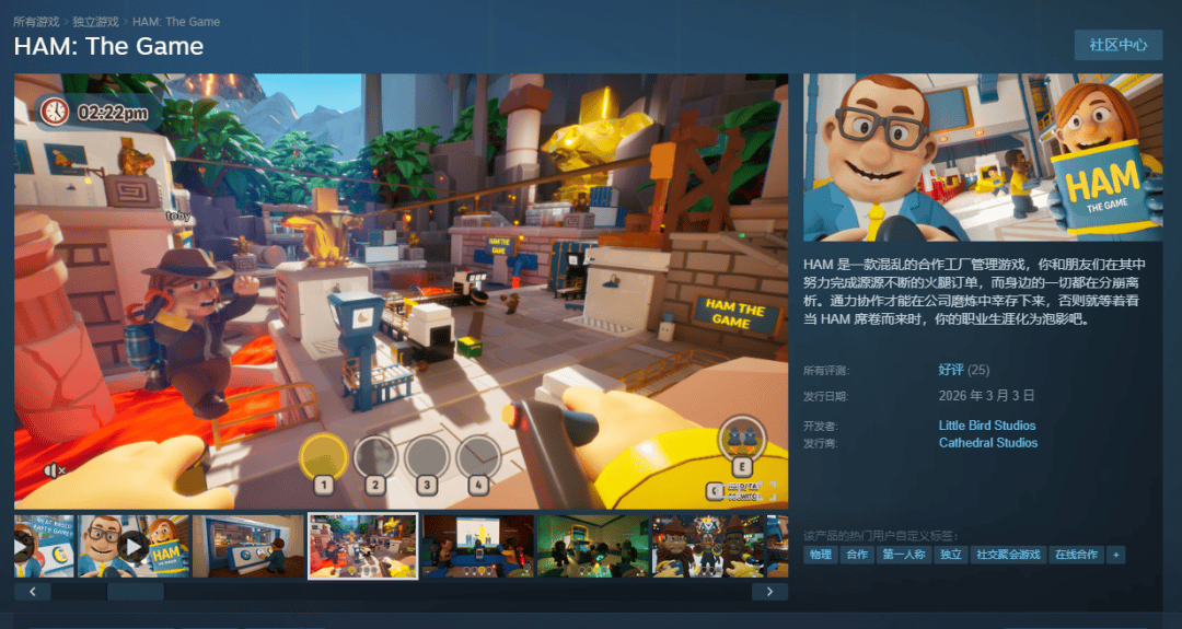 现在,《超级高尔夫大乱斗》的出现再一次证明,“友尽”游戏依然是一片未来可期的蓝海市场。我猜,未来随着该赛道进一步发酵,在开车、爬山、高尔夫这些竞技、户外题材之后,这个品类或许又会返璞归真,重回做饭、搬家等更加日常的主题。像刚刚在Steam发售的工厂合作管理游戏《HAM: The Game》,或许就是潜力新品。