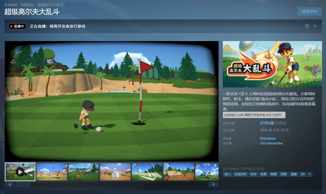 这款由Brimstone开发、Oro Interactive发行的高尔夫球题材游戏《超级高尔夫大乱斗(Super Battle Golf)》上线于2月19日,短短十几天便已在Steam获得超3300个评论,好评率96%(好评如潮);同时在线人数超12000人,而且最近还有继续走高的趋势。