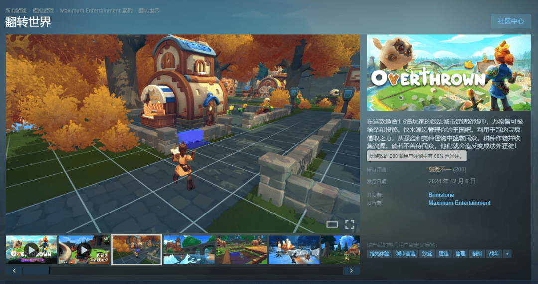 再比如于2024年推出的混乱城市建造游戏《翻转世界》,可支持1至6名玩家共同建造城市,保护村民。