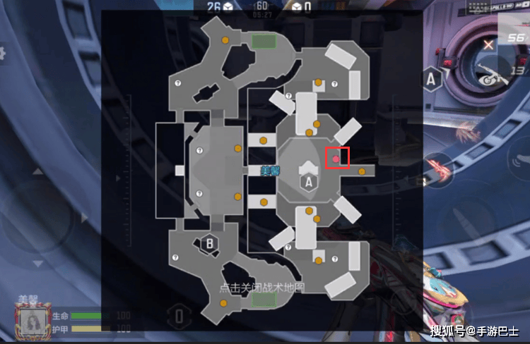 第三个高价值笨笨刷新点则是位于地图中间连接位置,该点位位于A点的左侧,从地图中可以清晰的看到,这个点位大家经常路过。穿过传送门后就来到外太空了,这里比较空旷,又是双方阵营经常会蹲守的点位,大家需要注意周围是否有蹲守的对手,一定要随时观察四周。