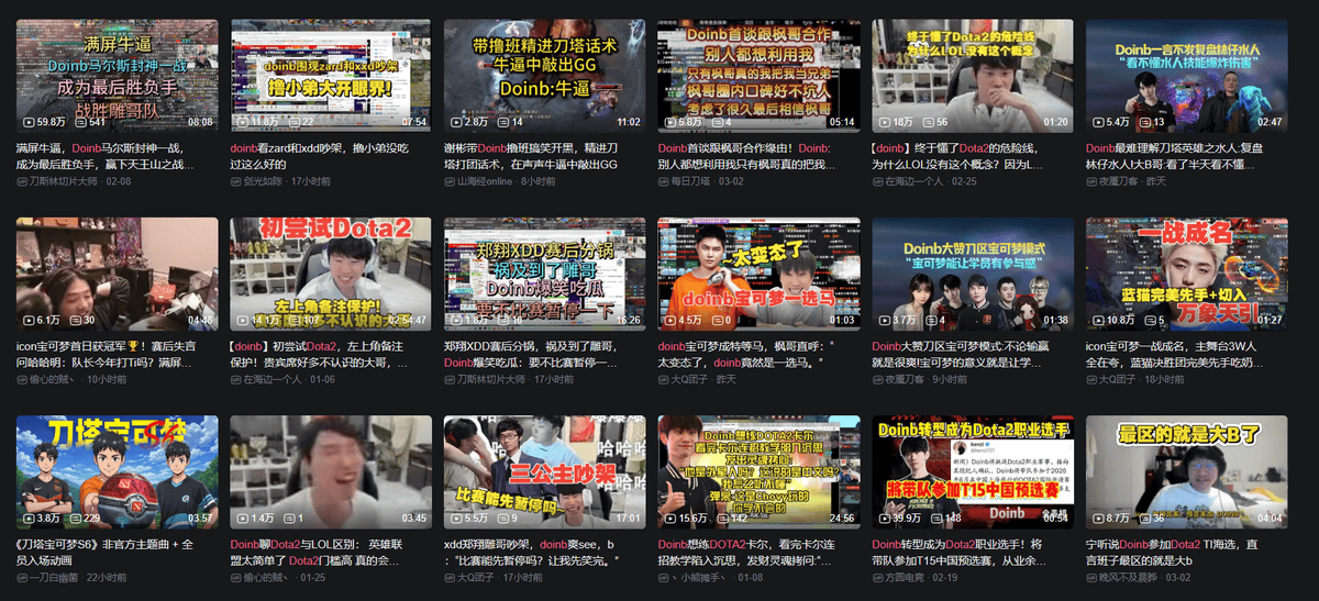 最具鲜明对比的是,前LPL冠军中单Doinb在2026年转战DOTA2后迎来事业第二春,转职播DOTA2后没想到贵宾、人气丝毫没有下降反而还增长了许多,其转战DOTA2相关切片在各大视频平台都能带来海量的播放。如今Doinb参与宝可梦S6比赛还为自己带来了大量直播节目以及观众人气,转战DOTA2后的Doinb直播依然做的风生水起。