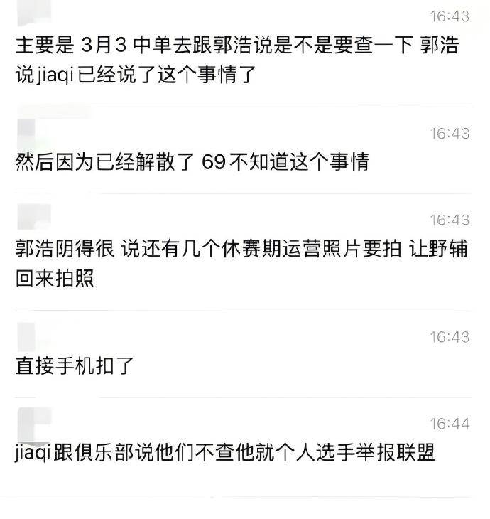 其次,这套异常的出装搭配确实成为了TES俱乐部启动调查的导火索。该AD选手在比赛结束后立即向Naiyou爆料,要求俱乐部展开调查,甚至表示若俱乐部不处理,他将以个人名义向LPL联盟举报。最终,郭皓决定让打野与辅助返回基地配合拍照,并暗中扣下他们的手机以搜集证据。