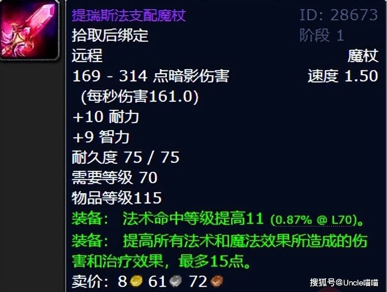 在魔兽世界TBC版本,有两大命中魔杖堪称传奇,其一就是性价比拉满的提瑞斯法支配魔杖,其二就是风暴要塞的遗忘之星,但是论性价比来说,喵叔个人还是首推卡拉赞埃兰之影掉落的提瑞斯法支配魔杖,毕竟TBC周年服肯定还是金团模式,遗忘之星的金币需求与竞争是可想而知的,而且那东西智耐全无,所以对于一般的玩家你手握提瑞斯法支配魔杖,甚至可以直接咬牙坚持到太阳井高地换魔魂手杖,实在不行的话,还有黑暗神殿血沸的棱光聚焦魔杖可平替,你就说香不香吧?