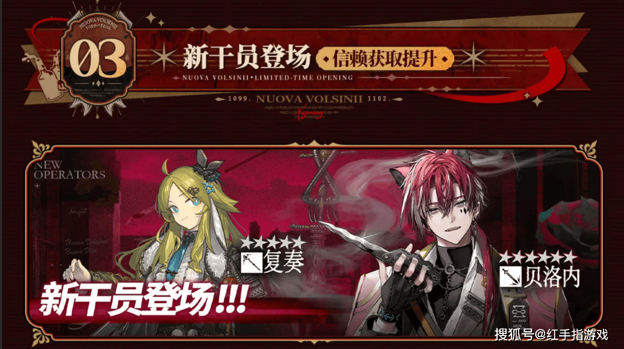 新干员:贝洛内(六星)、复奏(五星)