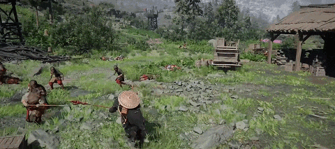 由于游戏中是广泛存在“1V多”的情况,所以《红沙》还贴心地提供了两种不同的锁定模式,一种是按住L1会将视线锁定在最近的敌人身上,但镜头(视角)仍可自由移动。他为多人混战中提供了一种观察周围情况的手段;另一种则是按下方向键 ↓ ,他会在单打独斗时,锁定自身的攻击方向,以便玩家发起更精准的攻击。
