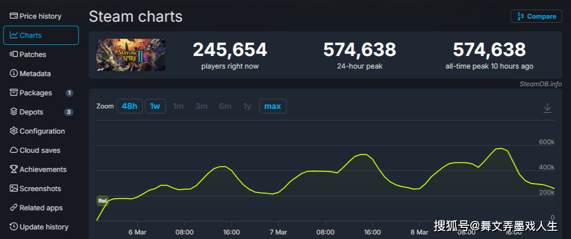 美国独立游戏开发商Mega Crit Games开发的卡牌策略冒险游戏《杀戮尖塔2》,发售仅3天时间Steam在线峰值就达到了574638,是初代作品的10倍之多。