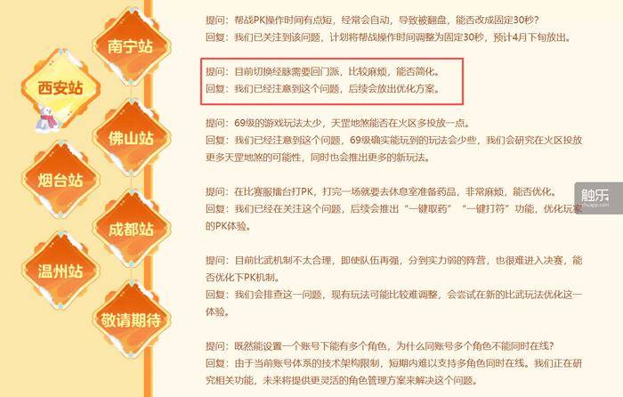 我们也能在很多时候看到官方这种诚恳的态度。2025年期间,梦幻的开发团队跑遍大江南北,与来自五湖四海的玩家一起面对面交流,讨论游戏的方向、解决玩家的疑惑。比如,在西安站、佛山站见面会结束后,策划就针对经脉流派切换、“奇袭”机制等问题进行了深度优化。