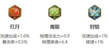 3、解读:红月提供攻速和暴击率 鹰眼提供的物理穿透 狩猎提供移速攻速