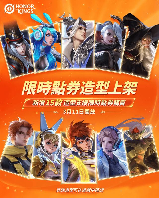福利方面,3.6-3.16 集道具可兑最高 5000 限时点券,3.20-3.22 抢绿包最高得 10000 点券;3.14-3.15 登录送积分夺宝 10 抽和元流时装,还能免费体验全英雄全造型,3.11 起 15 款造型支持限时点券购买,签到十天可领勇者造型宝箱,元歌新造型还能限时低价秒杀,合伙人计划也能解锁丰厚奖励。