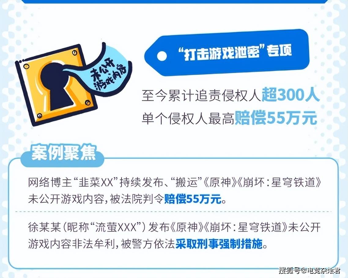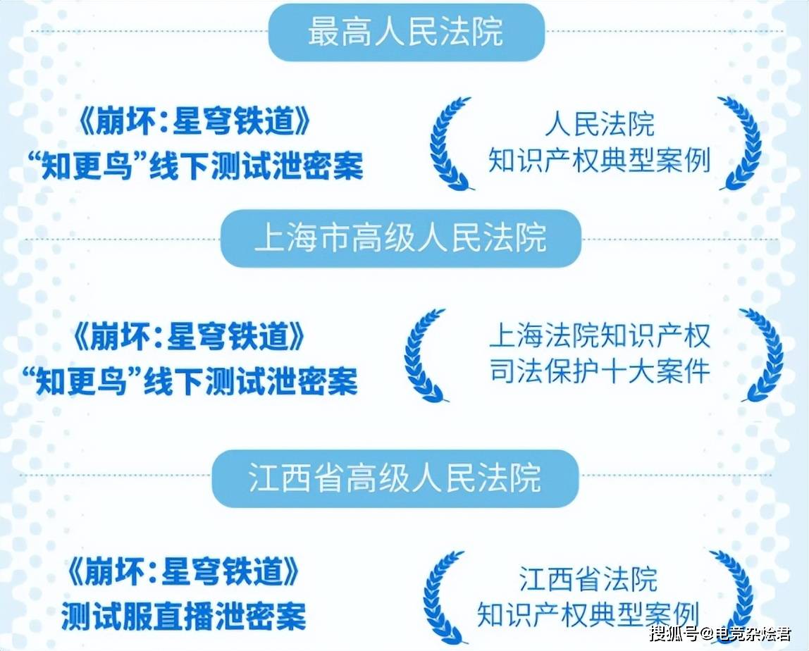 米哈游的影响力在互联网有着不俗的地位,这也让不少泄密案件都成为了司法、行政机关的典型案例,比如崩铁“知更鸟”线下测试泄密案就成为了人民法院知识产权典型案例、上海法院知识产权司法保护十大案件,起到了震慑作用。