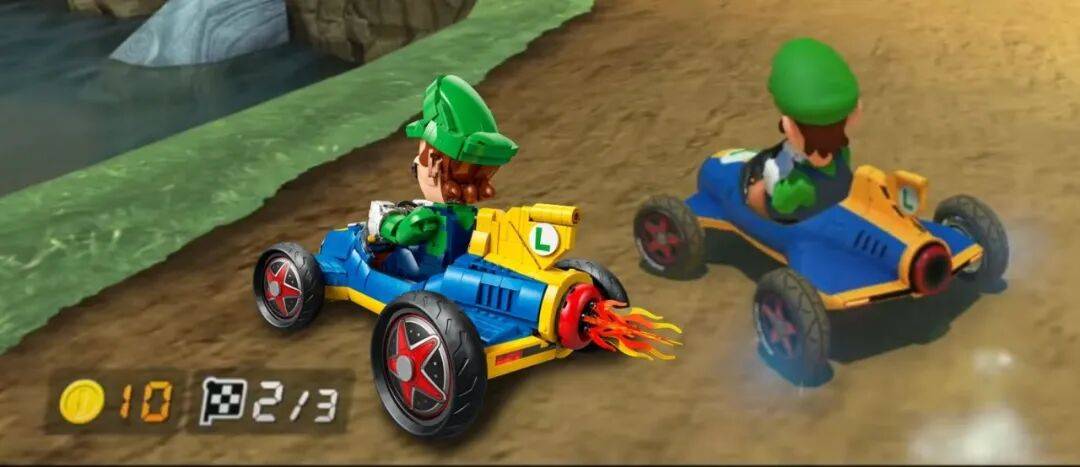 将乐高模型与游戏 《马力欧赛车 8》中的 Mach 8 赛车进行对比,可以看到整体还原度相当高。
