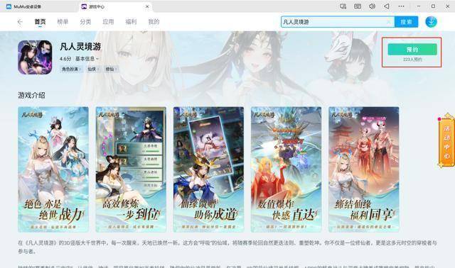 启动模拟器,在游戏中心搜索“凡人灵境游”,点击预约,待游戏上线后即可开始畅玩。