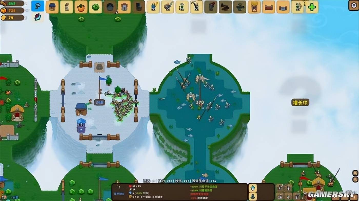 在占领一个方块后,你便能永久获得其相邻所有方块的所有的实时信息,包括地块上的资源、敌人以及其上的兵力总和,配合上能无限拉高的视野,信息获取这个在传统RTS里的重要部分得到了大幅的简化,真正做到了眼见即所得。
