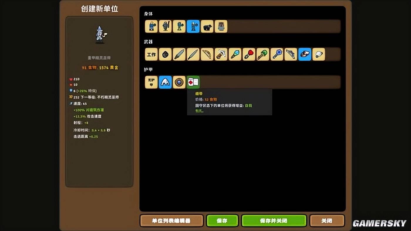 举个例子,你可以通过给士兵安上盾牌、长枪、头盔、绷带等装备,通过这些装备所赋予的远程格挡、击退、护甲、脱战回复等属性,让其变成一个巨能抗线的前排单位;而当你将士兵的种族换成输出更高的精灵,将武器换成弓箭、法杖后,你便得到了一个有着高血量与护甲,同时还能打出高输出的“重甲弓箭手/法师”……