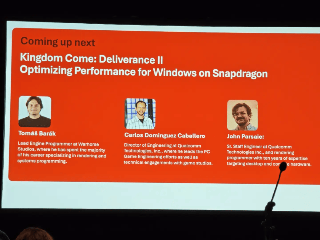在今年的 GDC 大会上,一场题为“在骁龙 Windows 系统下优化《天国拯救 2》表现”的演讲引起了关注。