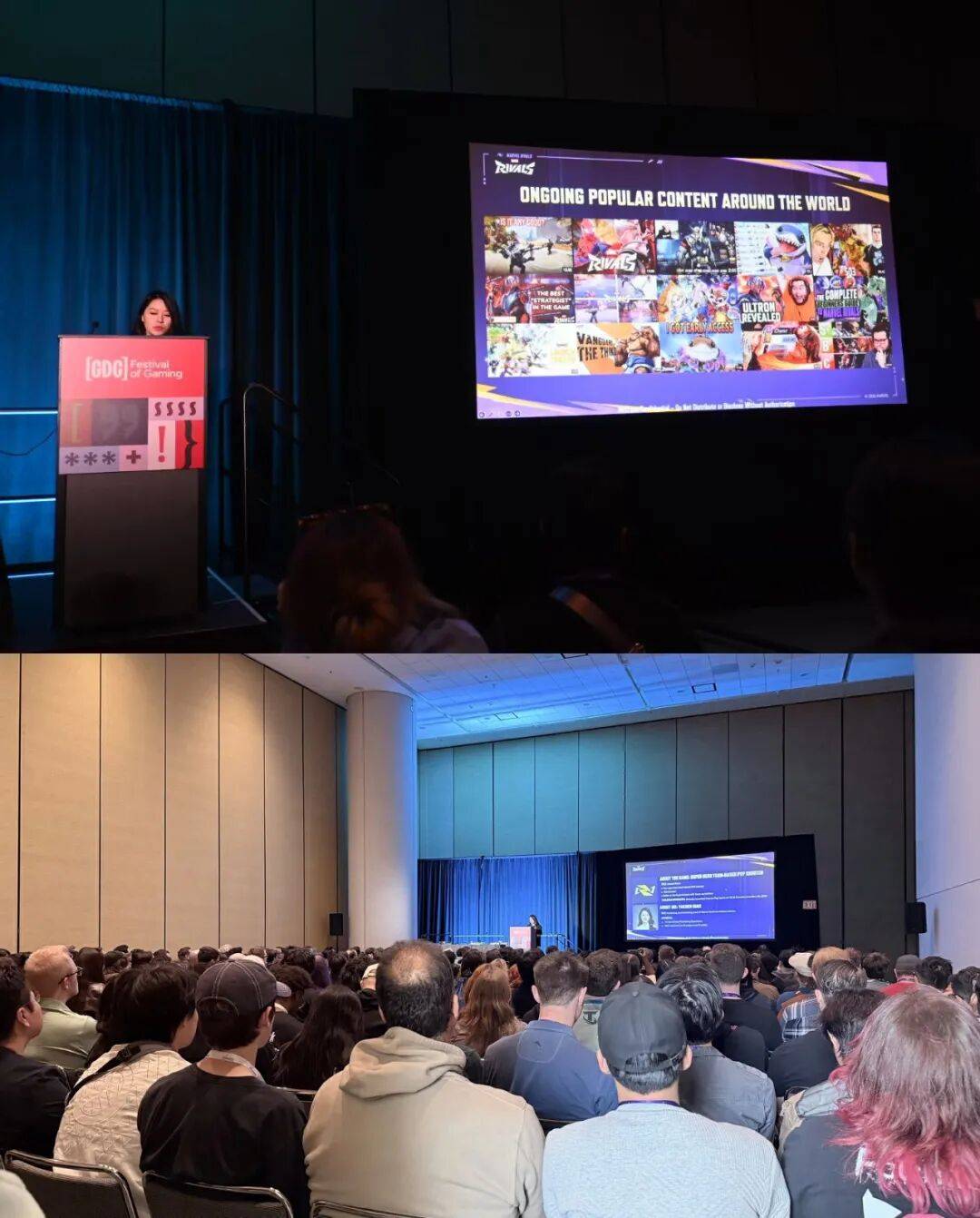 在近期的2026年GDC大会上,《漫威争锋》主策划陈光昀、市场发行负责人Yachen分别从产品侧和营销侧两个方面,分享了这款游戏从超级英雄设计、长期版本平衡,到用户生态搭建、长线内容迭代的全套实操方法论。两场Session还未开始,场外就已大排长队,会场内更是座无虚席,《漫威争锋》在全球的行业影响力可见一斑。