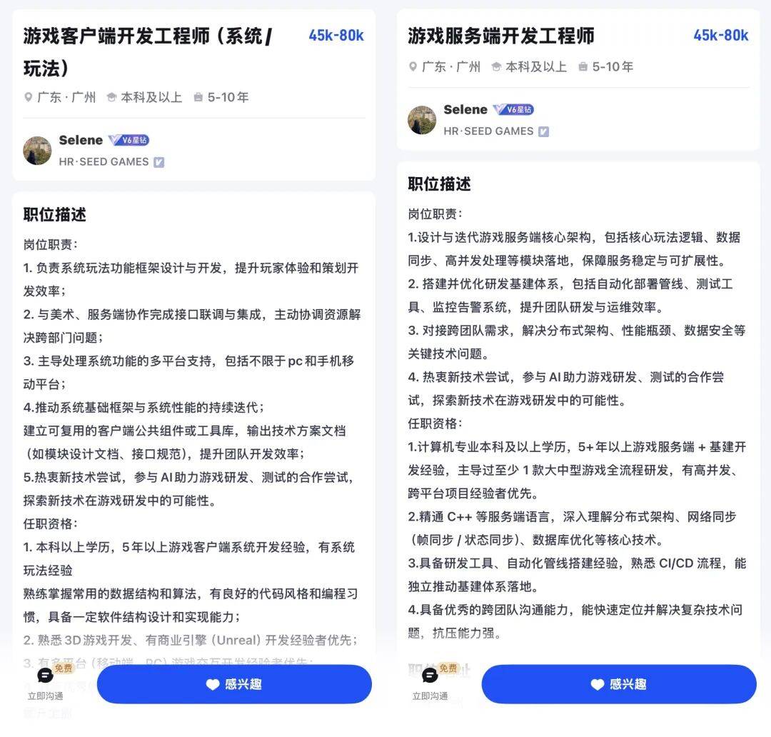 此外,易修钦还提到AI让技术平权了,而他们从中看到了机会。芥子游戏的招聘需求中也有AI相关要求。同时他们在AI时代仍看重程序的架构能力,美术的审美能力,策划的创意能力等经验积累。