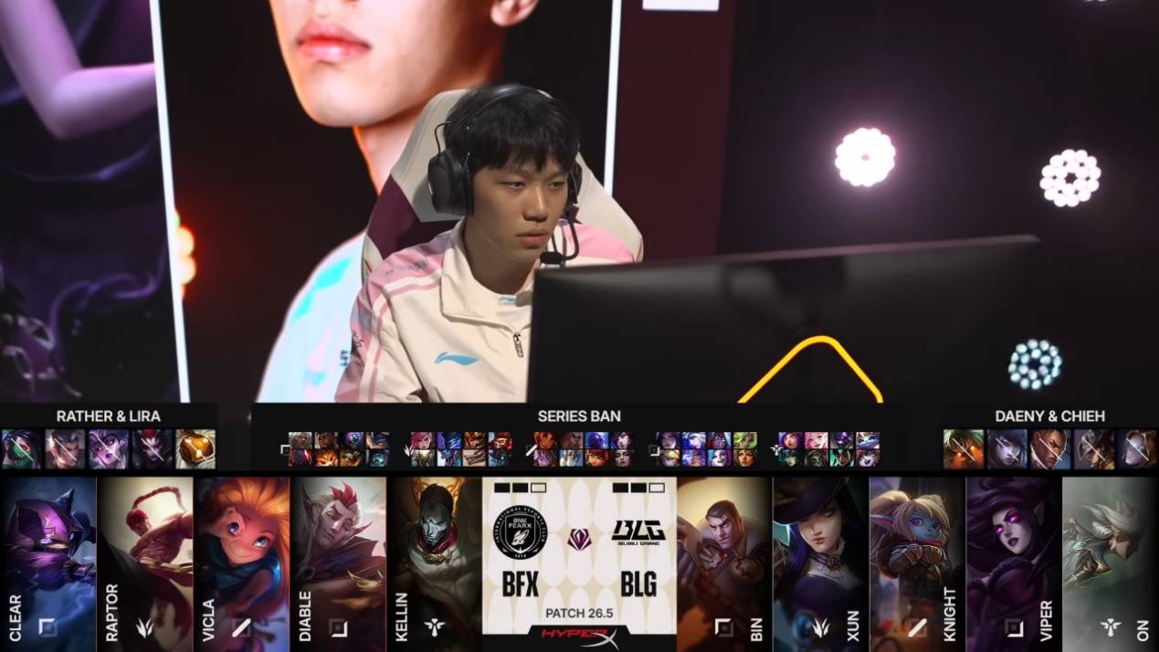 BLG第一局可以说是打出了3-0横扫的气势,但到了第二,三局接连翻车,给Bin选出坦克,放对手金克丝,对位出现问题,中期团战针对金克丝手段不足,被对手直接起飞砍下五杀。