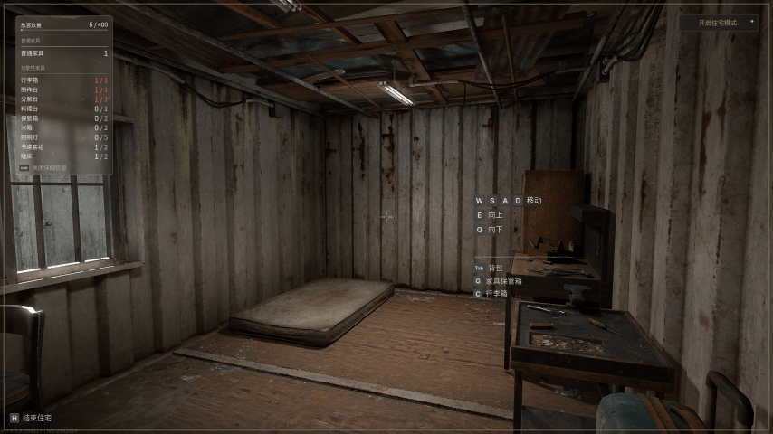 除了上面提到的那遍布地图各处的“羊肠小道”外,《纳克园》还试图通过多个维度来提升玩家的生存空间。利用房间内的分解台,玩家可以将地图中带出的废品,转化为各种应对特殊情况的实用道具。空瓶子转化成玻璃碎片,用于吸引丧尸的注意;含有塑料的护具则可以转化出塑料袋,用以应对下雨等特殊天气。若是不想在对局中消耗它们,也可以在旁边的工作台和其它材料一同制成武器和防具,以备不时之需。