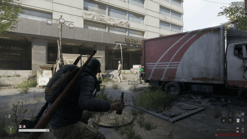 因为枪械在危机重重的末世下实在太珍贵了,远不是底层居民能负担得起的。玩家开局可以入手的战备,只有铁锹、木棍之类的近战武器,以及塑料袋或杂志做成的防具,但这些东西光看名字就知道并没什么卵用——丧尸本来就比普通人更加坚实耐打,木棍上去敲上几下,那少得可怜的耐久度就会光速清零,更别说一挠就破的塑料袋了。所以,玩家只要在前期跟僵尸硬碰硬,那身上多半都会挂点彩。