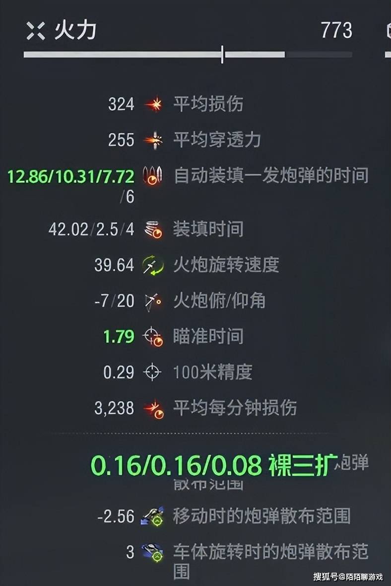 它的三扩也不差,达到0.08/0.16/0.16,对弹鼓车来说算是很好的水平。而1.79秒的瞄准时间和0.29精度也很优秀,妥妥的黑枪高手。同时60+的极速和20+的单位功率,也完全配得上汤米“老司机”的身份。