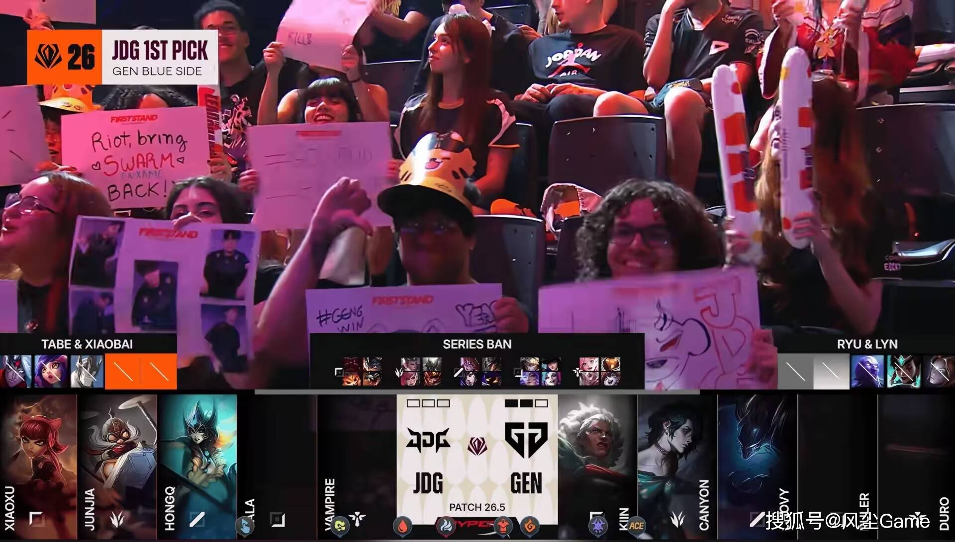LPL二号种子JDG,在交手GEN的时候,被3:0直接零封了,打到第三局BP的时候,导播给到现场观众席画面,一位现场观众,直接对着JDG倒竖大拇指,用LOL的表情来解读的话,就是“弱爆了”,其实不能怪观众上嘴脸,实在是京东打得太差了,比赛全程都被GEN暴打,像捏小鸡一样。