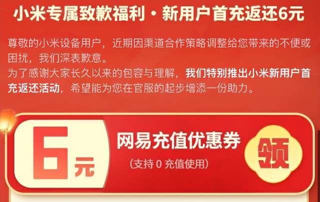 更狠的是,用小米设备注册的新用户,首次充值6R以上直接返6R券,相当于白嫖6米!