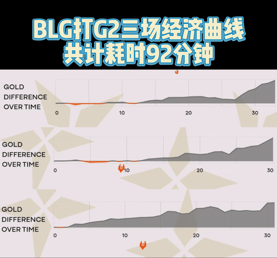 之前GEN打JDG三场比赛一共76分钟,每一场都是一丝机会不给对手,完完整整的碾压,窒息的比赛!而BLG打G2三场比赛一共92分钟,虽然都是压制,但是BLG这边明显会有一些纪律性的问题,有压制力但不够稳定。而这不稳定因素,在对到GEN,一旦出现就是一条巨大裂缝!
