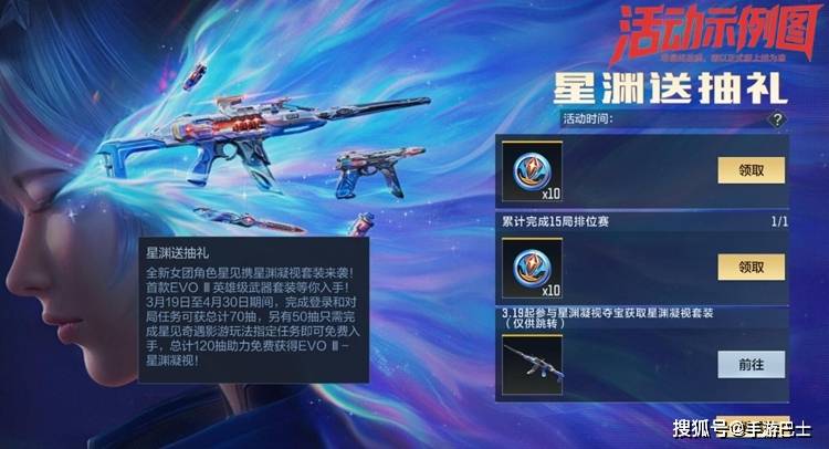这120抽可不只是数字好看,按照“星渊凝视钻石夺宝”的保底规则,整整120抽可是能够拿下一把永久的“EVO III-星渊凝视”哦!也就是说,只要兄弟们把这波免费送的抽奖次数全部领到手,这把“EVO III-星渊凝视”就能够直接拿到手!从“星动的信号”到“星渊送抽礼”,两款活动层层加码,3月19日真人影游上线后边玩边领币,抽奖抽到手软!