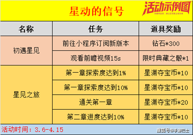 星动的信号活动分为两个部分,第一部分“初遇星见”已经在3月6日上线了!还没领到奖励的兄弟抓紧了,只需要动动手指“前往小程序订阅新版本”并“观看15秒前瞻视频”,就能轻松拿下300钻石+1个限时典藏之骰。这么简单的任务就能领到手,千万不要错过哦!