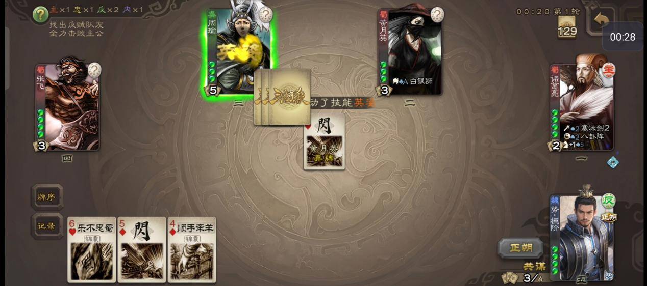如果自己手牌防御牌桃子无懈比较多,可以找队友换增强防御,保护回合外的自己;如果自己本身牌就很好,那也没必要强行换牌,直接进回合正常出牌即可,切不要贪心。桓阶换牌后带来的奇策技能,看似是一个添头技,实际上用处也很大。桓阶本身用牌能力是比较差的,容易卡自己杀出不去,奇策提供了一个清手牌的机会。可能有人要问了,桓阶一个三血无防,要奇策干什么呢?这就要看桓阶的二技能了。