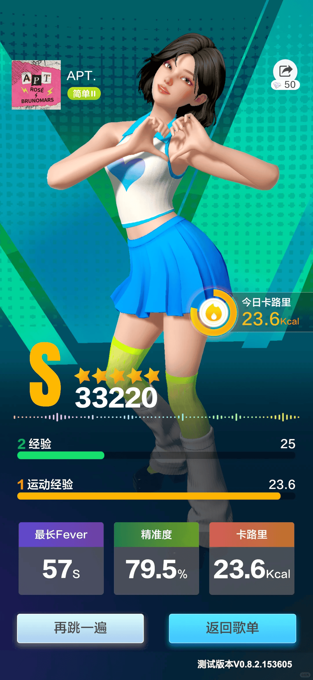 而且,每支舞曲结束后,系统都会清晰展示预估的 卡路里消耗。