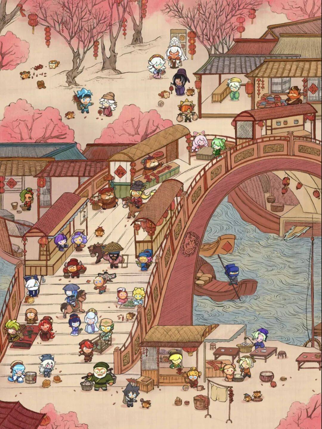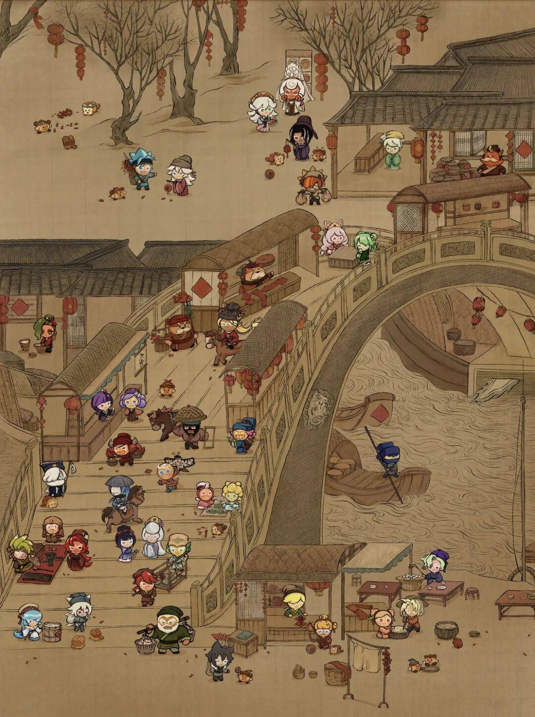比如把饼干人画进《韩熙载夜宴图》《千里江山图》《清明上河图》,这类内容既保留了饼干人标志性的可爱调性,又自然地嵌入了中国玩家最熟悉的文化符号。