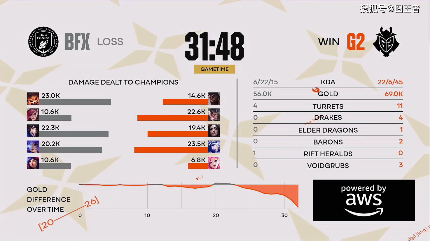 结果第一局比赛,BFX完全不在状态,被G2成功击败。这也代表着中韩战队,在本次先锋赛面对其他赛区遭遇小局首败。7分钟左右,Hans Sama神箭破局,VicLa满血阿狸被定在塔下遭到击杀;12分钟左右,Labrov萨勒芬妮完美先手,G2击杀Raptor并拿下小龙;19分钟左右,Kellin率先开团BFX集火击杀寒冰,BFX接连推塔反超经济;24分钟左右,Raptor强行进场效果不佳,BFX团战稀碎G2拿下水龙魂与大龙;最终31分48秒,BFX抓住机会秒掉寒冰,但G2上野战斗力十足打赢残局团灭BFX,先赢一局!