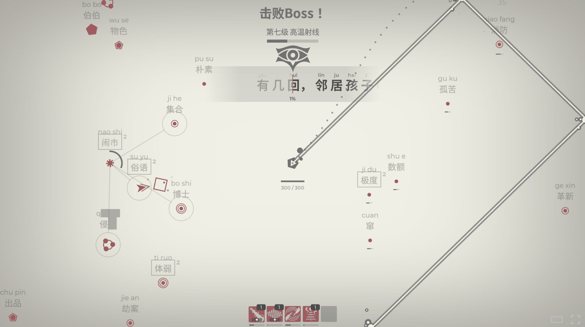 玩家通过打字击败敌人,升级选择不同武器以及加成,并战胜最终Boss即可胜利,关卡设计类似于不能移动版的土豆兄弟