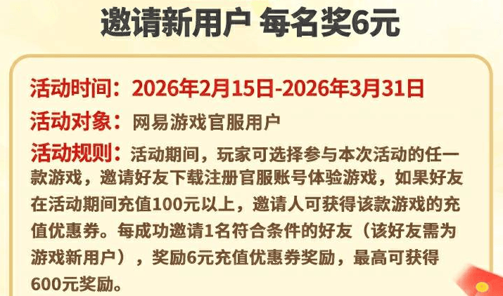 不得不说,玩游戏和搭子一起薅福利才是最爽的!只要你邀请一个新用户,注册官服并充值100r以上,就能领6R券,最多能薅600r!转头我直接邀请闺蜜下载游戏跟着我一起肝推演、打排位,等她充值100r后,我就能拿6r券,相当于闺蜜氪的精华,我也跟着分了一杯羹。