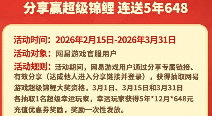 不仅如此,首次在注册的网易官服新用户,登录就能拿到5r或100r的充值优惠券,这可是100%必拿的!有一点要注意的是,同一个设备、账号只允许参与一次活动,并且默认以第一个登录游戏发放哦~