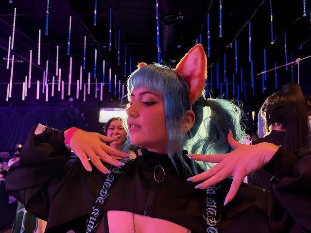 因为玩家给她贴了一个标签:“蓝发开发者”。