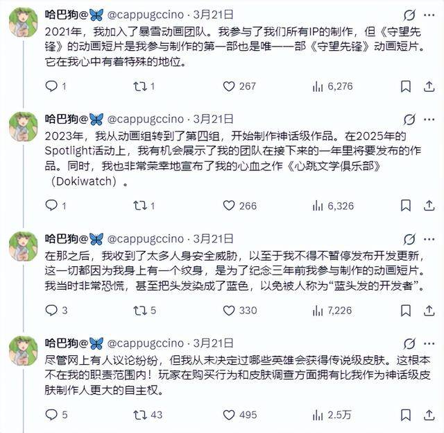 索恩斯后来反复澄清,她从未决定过哪个角色获得传说皮肤,这甚至不在她的职责范围内。