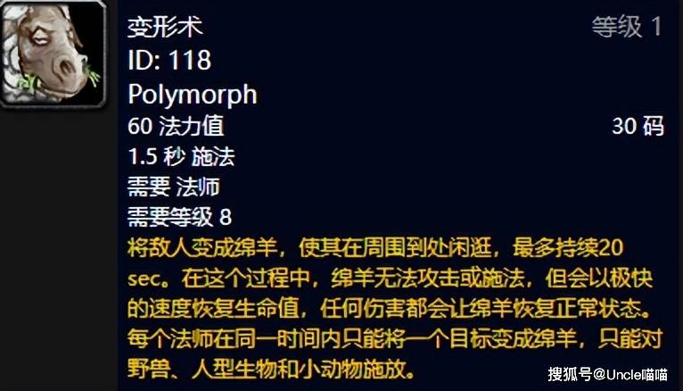说到法师,其实喵叔考虑过闪现,但是位移性技能的话很多职业都具备,所以给到了具备强大控场能力的变形术。作为法师的招牌控制技能,变羊可以将敌人变成一只温顺的绵羊,使其失去战斗能力,为法师创造输出或逃跑的机会。在PVP战场中,一个精准的变羊往往能打乱敌方的战术部署;PVE的话,变羊也能帮助团队有效控制小怪,减轻坦克的压力。变羊技能的存在,让法师成为了战场上掌控战局的艺术家。