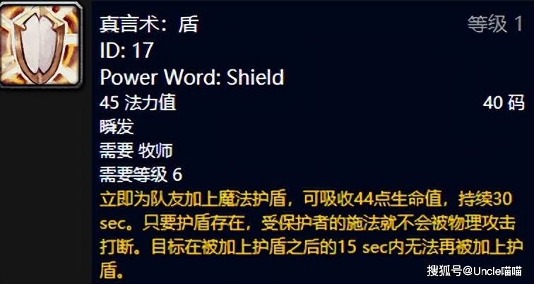 团队中最温暖的守护。这个技能可以为队友施加一个吸收伤害的护盾,在关键时刻为队友抵挡致命一击。无论是在激烈的副本战斗中保护坦克,还是在PVP战场里为残血队友续命,真言术盾都如同一个神圣的屏障,默默守护着团队的每一员。牧师也凭借此技能,成为了团队中不可或缺的守护者。不过这个仅代表喵叔个人看法,不知道各位大兄弟觉得牧师最具代表性的技能是啥?
