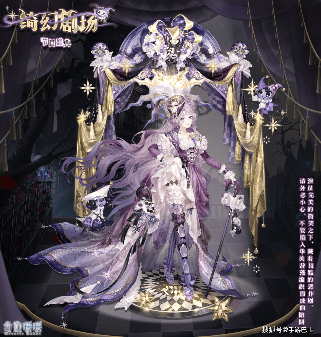 【绮幻剧场】含正常姿势与特殊姿势,全新妆容“狡黠陷阱”,方块面饰“愚人狂欢”,精美可移动摆件“虚妄舞台”、“幕间幻象”、“盛情邀约”。