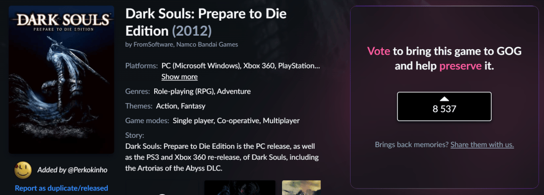 在专注于经典游戏的GOG平台上,有着一个名为Dreamlist的许愿功能,玩家们可以给自己喜欢的老游戏投票,而GOG也会以此作为参考,将那些因为各种原因无法登录PC的游戏,重新带回现代平台。
