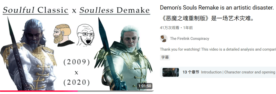 消息传开后,蓝点于2020年发布的《恶魔之魂》重制版,自然而然地又被玩家们拉出来讨论了一番。