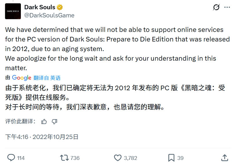 大概也正因如此,FS社在2018年的5月 9日,选择了永久下架《受死版》,取而代之的,是画质全面增强、运行更加稳定的《黑暗之魂:重制版》。现如今大部分新入坑的魂游玩家,玩到的也基本都是这个版本。