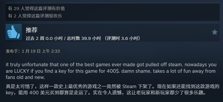 尽管《受死版》的价格居高不下,但近些年里,依然时不时有玩家抱着朝圣的心态,斥巨资购入这款绝版游戏。